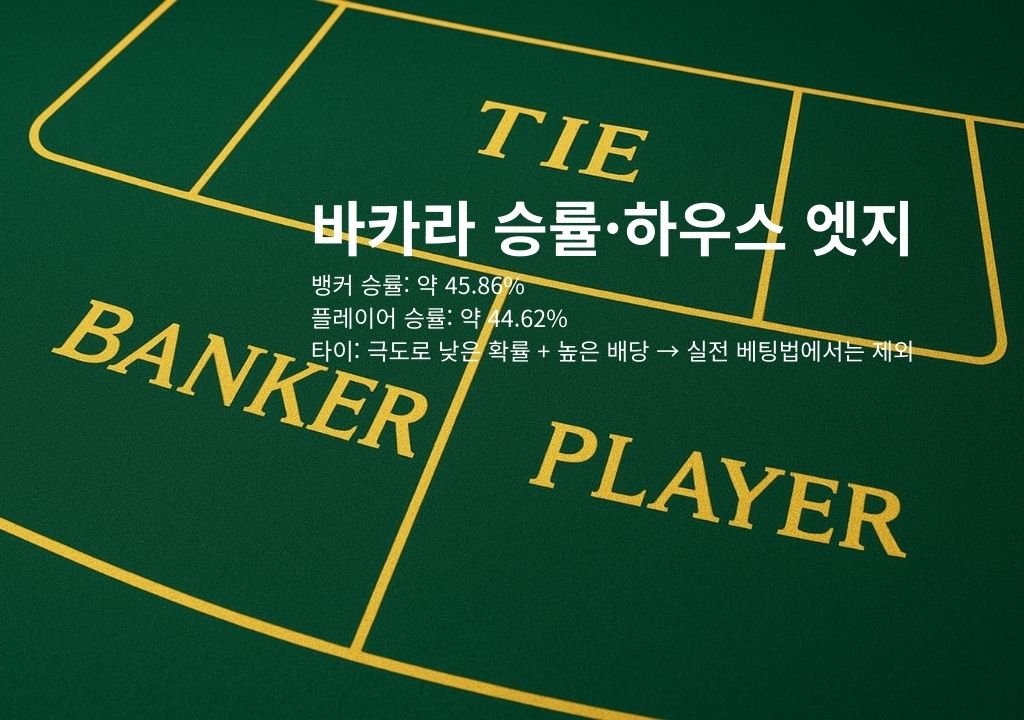 타이: 극도로 낮은 확률 + 높은 배당 → 실전 베팅법에서는 제외